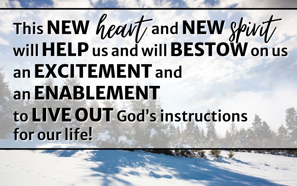 God is continuing to do a new thing in us! He has given us a new heart and a new spirit ~ and these will cause us to want to do what HE wants!