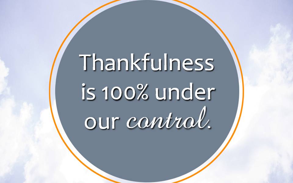 Think thankful thoughts. Stir up your thankfulness, rehearse it, until the individual pieces blend together and create the image of fullness that God has intended for us to experience.
