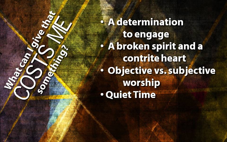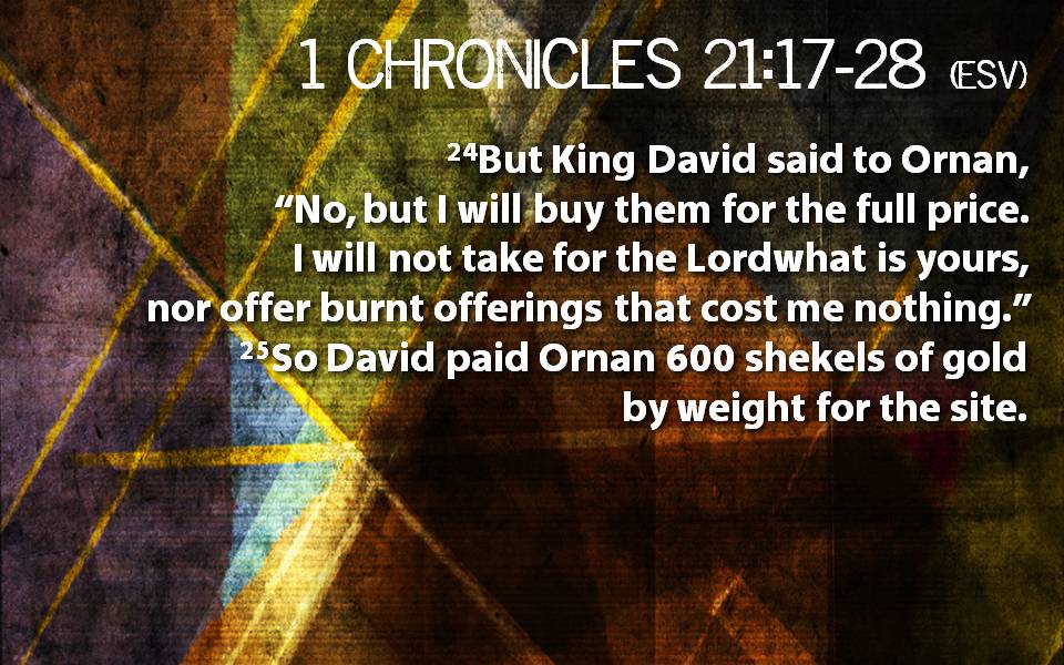 1 Chronicles 21:17-28  David would not offer to God something that cost him nothing.  Pastor Joe helps us to explore what is it that we can give that costs us something.