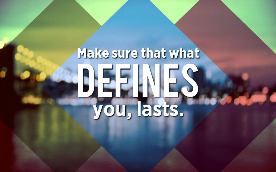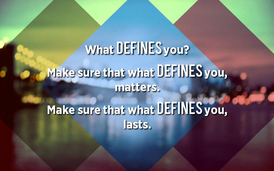 What defines you?  Does it matter?  Will it last?  Make sure that you are living now in a way that leaves a legacy of those things that really matter and that will last for eternity.
